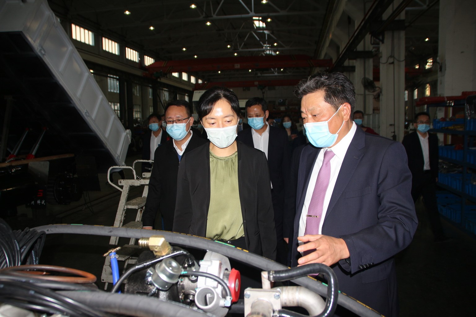 對于科試集團的新產品無人駕駛車輛盛市長倍感興趣,親自試乘,贊不絕口,她感嘆于鐘樓區還深藏著這么一家專業整車企業,并對公司的產品寄予厚望,對公司生產的煤礦井下用防爆車入圍工信部制造業單項冠軍的榮譽表示祝賀!