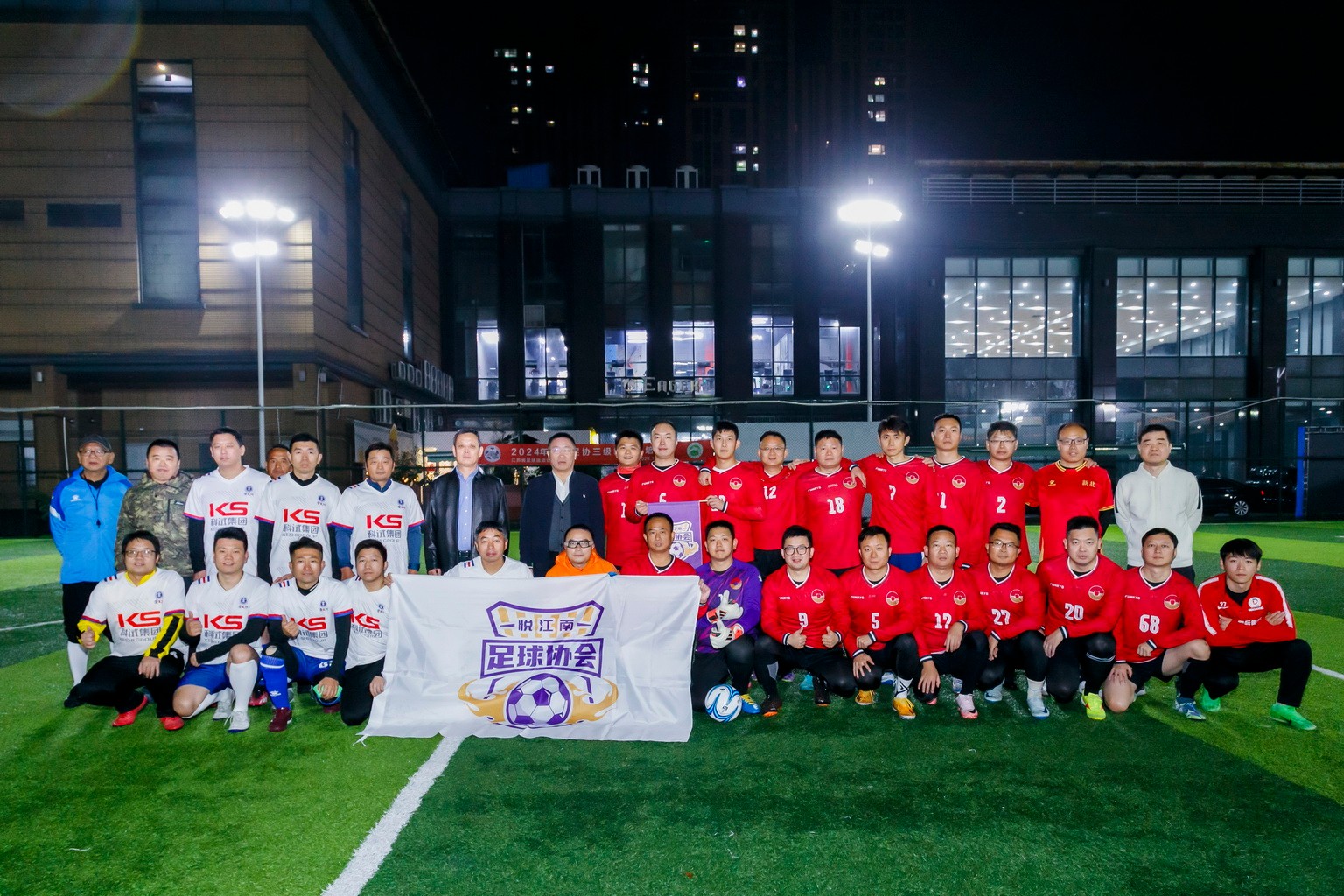 2024年11月25日晚18:00,常州科試集團參加了由科試集團、江南農村商業銀行、中國礦業大學常州校友會共同舉辦的運動嘉年華友誼賽,常州科試集團總經理王眉林(中國礦大常州校友會會長)與江南農商行黨委書記、董事長莊廣強(中國礦大常州校友會顧問)共同出席活動并為比賽開球。